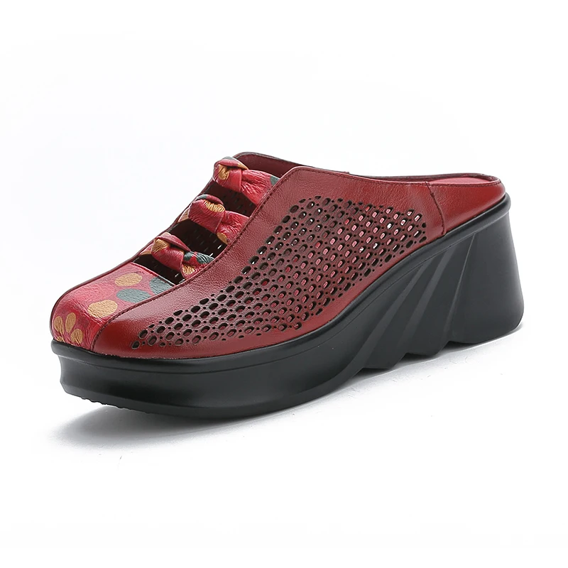 GKTINOO 2020 Fashion Cut-outs Women Shoes Slippers Summer Closed Toe Wedge Sandals Genuine Leather